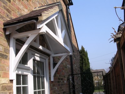 Fleur de lys style door canopy constructed from European redwood and supplied in kit form and supplied with wentworth brackets assembled. Supplied wth all the fixings necessary for fitting. This canopy is supplied with decorative tongue and grooved boarding to cover on top, so when viewed from the underside has a decorative finish. This canopy stands 62cm above the top of the brackets. Canopy supplied untreated, ready for your choice of preservative, stain or paint and roof covering (not supplied).